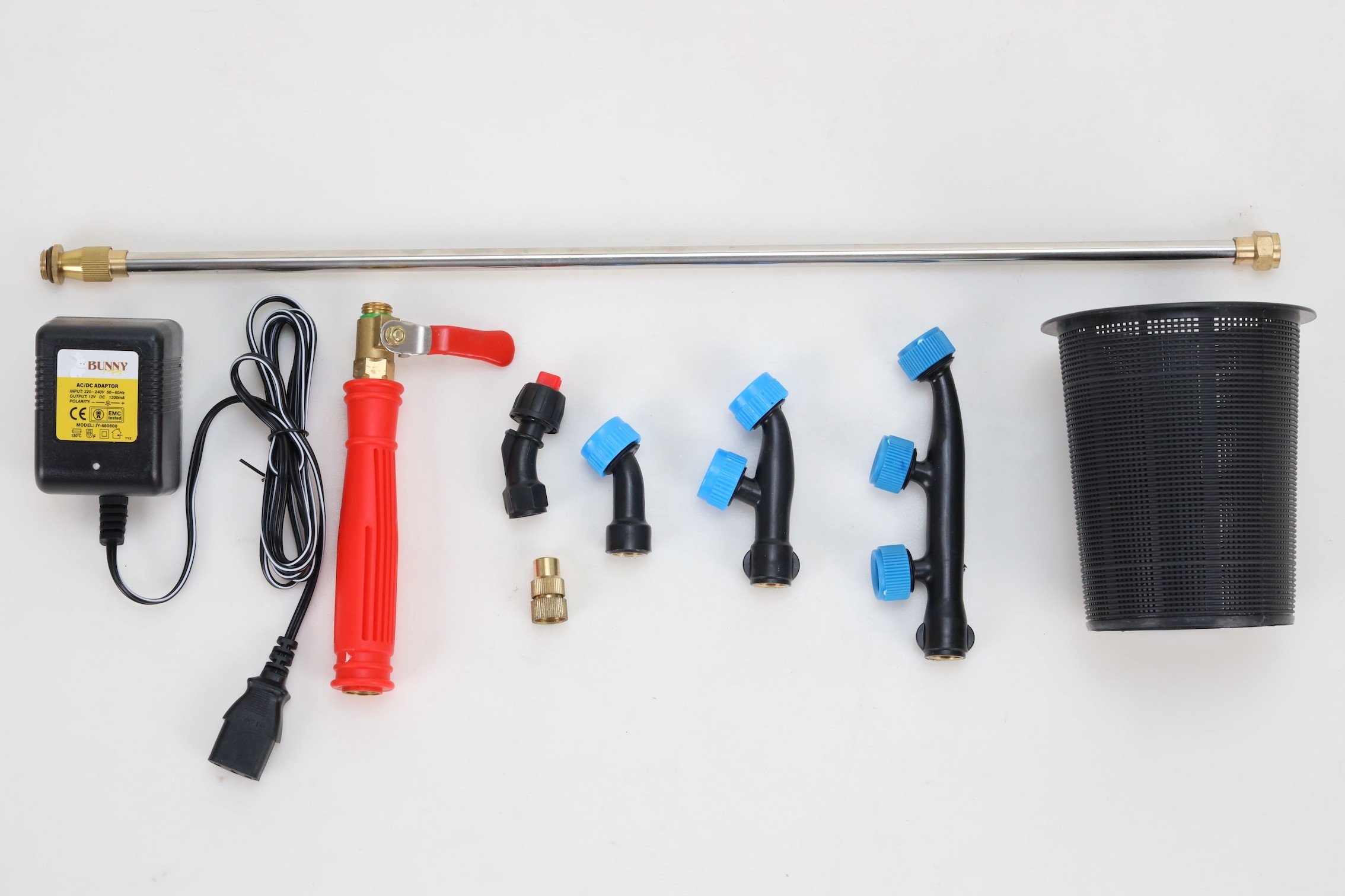 – Phụ tùng đi kèm : Lọc rác, Dây đeo, Cần phun, Tay cầm van bi, Bộ béc phun nhựa 4 béc, Cần 3 bec inox, Nắp bình nước, Bộ sạc, Dây nước 2 đầu răng.