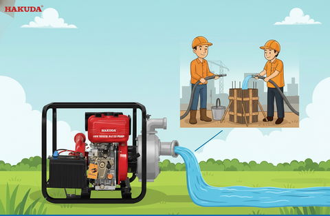 - Thoát Nước Hố Móng Chuyên Sâu: Đây là ứng dụng quan trọng nhất. HAKUDA 4KW xử lý hiệu quả nước bùn, nước bẩn tích tụ dưới hố móng, đảm bảo công tác đào đắp không bị gián đoạn.