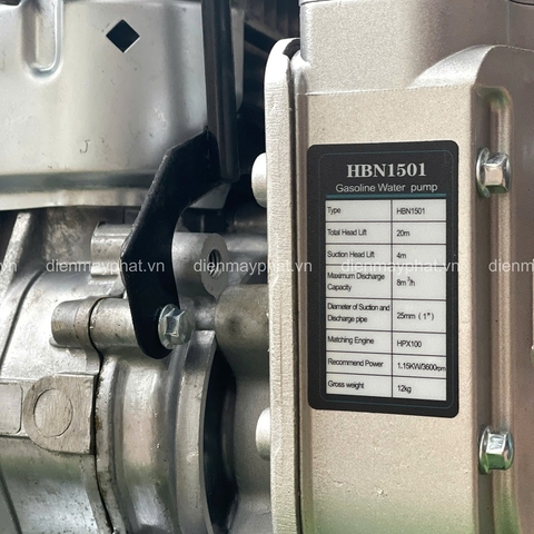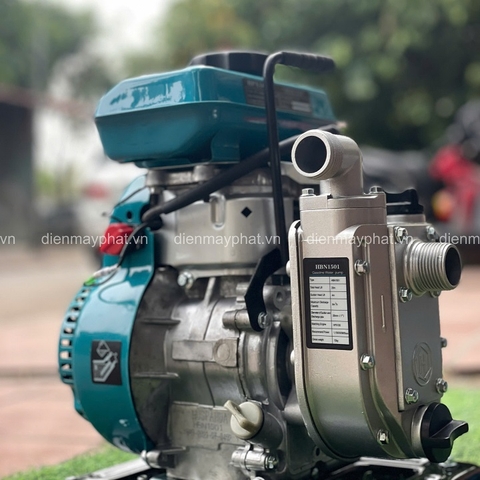 – Máy bơm nước chạy xăng HBN 1501 sở hữu động cơ 4 thì chắc chắn, nhỏ gọn.
