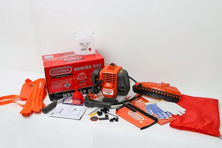 - Máy cắt cỏ 2 thì OSHIMA 543 1.65KW cam xám sản xuất trên công nghệ hiện đại của Nhật Bản tiết kiệm nhiên liệu.