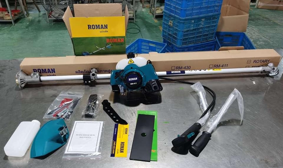 – Máy cắt cỏ 2 thì Roman RM-411 là dòng máy được sản xuất theo công nghệ Thái Lan.