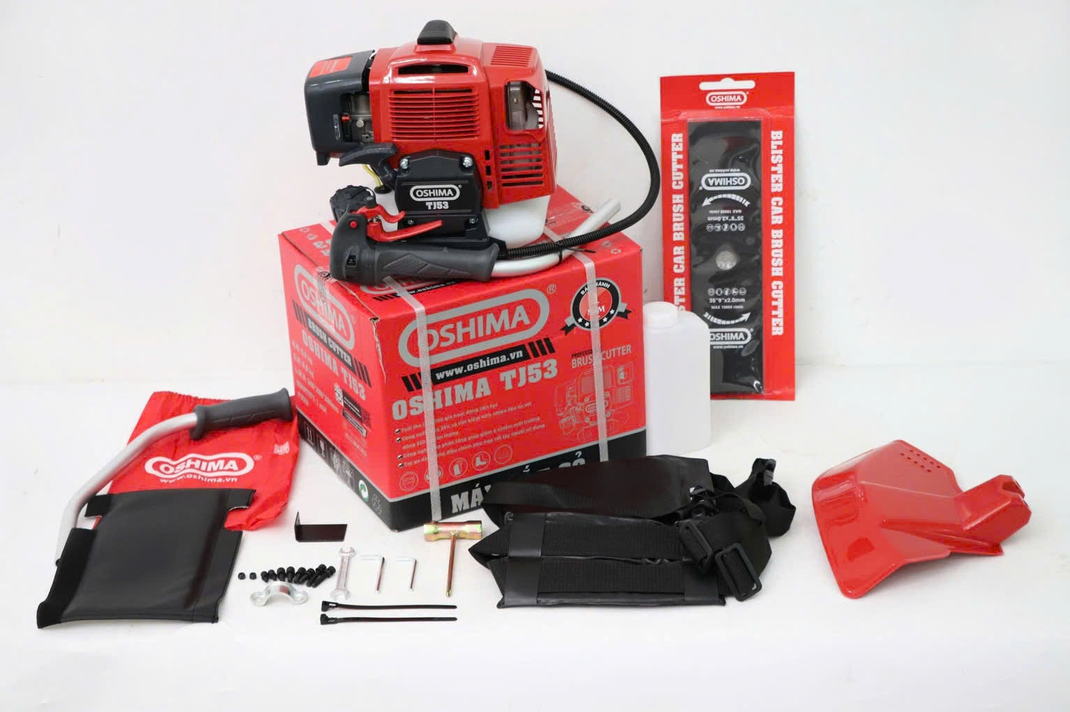 - Máy cắt cỏ chạy xăng 2KW 2 thì OSHIMA 2KW TJ53 sản xuất trên công nghệ hiện đại của Nhật Bản tiết kiệm nhiên liệu.