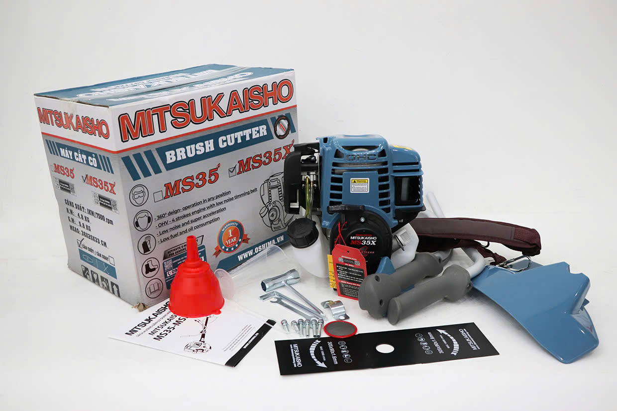 - Máy cắt cỏ Mitsukaisho MS35X 1000W Xanh dương 4 thì sản xuất trên công nghệ hiện đại của Nhật Bản tiết kiệm nhiên liệu.