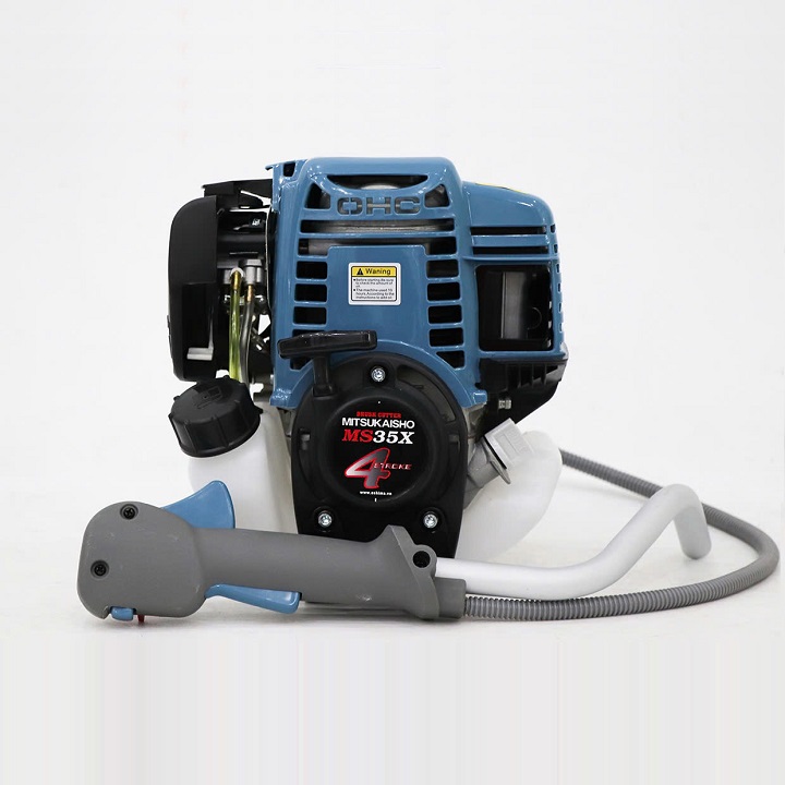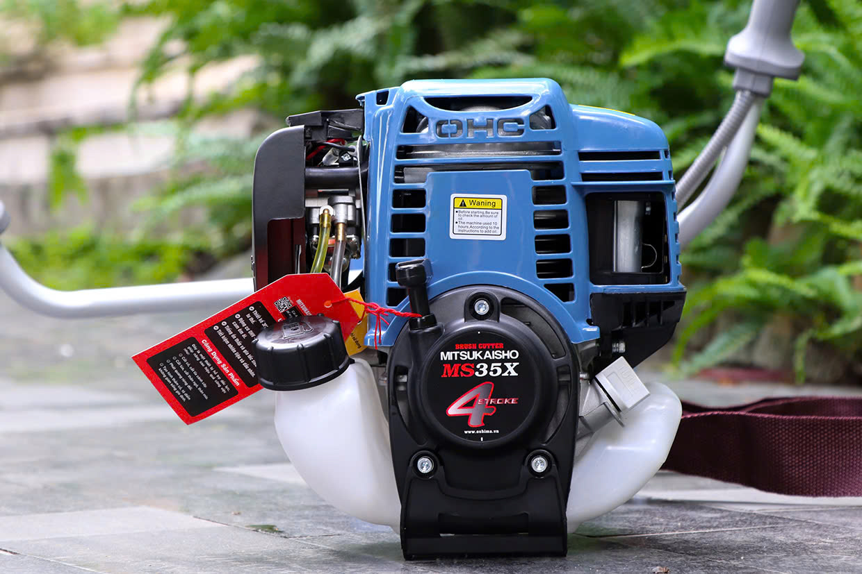 - Máy cắt cỏ Mitsukaisho MS35X 1000W Xanh dương 4 thì mang trong mình động cơ 4 thì làm mát bằng gió.