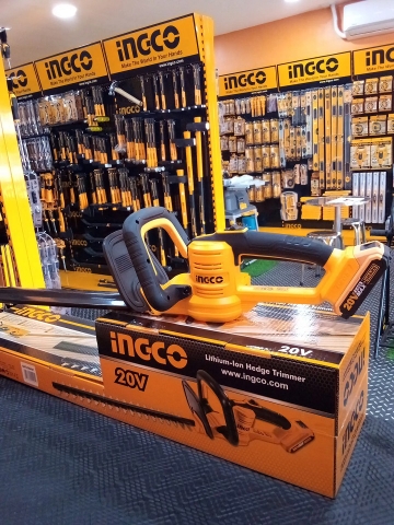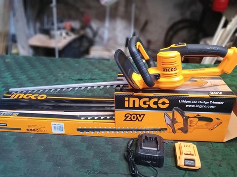 - Máy cắt hàng rào dùng pin 20V INGCO CHTLI20461, một dụng cụ cắt cành hiệu quả, tiện lợi và mạnh mẽ từ thương hiệu INGCO, một thương hiệu nổi tiếng trong lĩnh vực công cụ điện cầm tay.