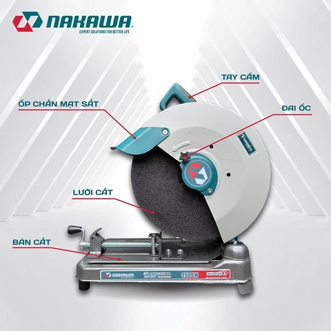 Máy cắt sắt NAKAWA 2500W NK-CS2500 công nghệ Nhật Bản là thiết bị chuyên dụng trong ngành cơ khí hay xây dựng, giúp cắt các loại vật liệu như sắt đặc, sắt ống, thép hộp, thép hình… một cách nhanh chóng và chính xác. Với thiết kế khỏe khoắn, động cơ công suất lớn, máy mang lại hiệu suất làm việc tối ưu, đáp ứng nhu cầu sử dụng liên tục.