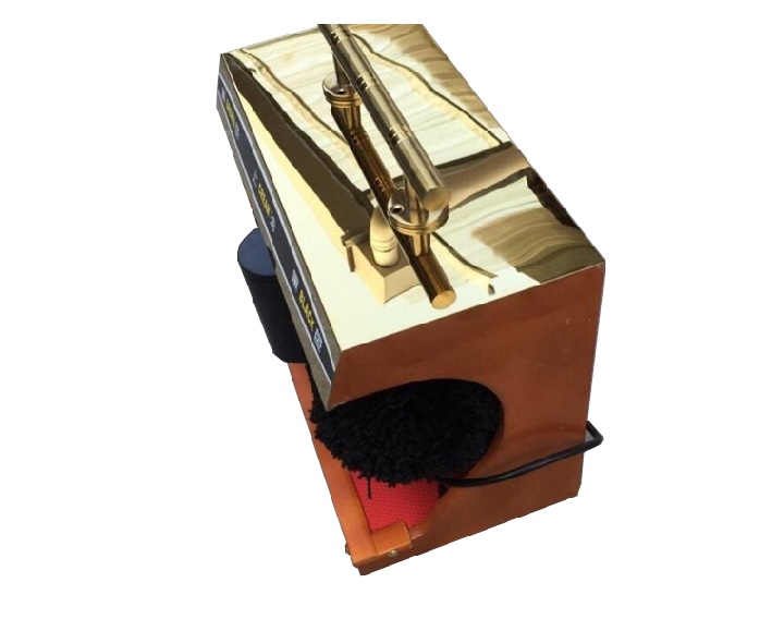 – Máy có thiết kế có tay cầm với 4 chổi đánh giày: 2 chổi đánh bụi và 2 chổi đánh bóng.