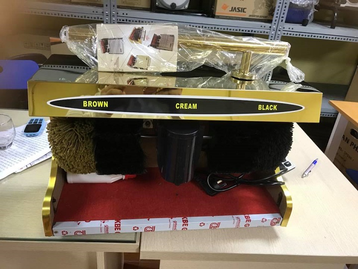– Bước 4: Máy sẽ đánh bóng giày đen bằng chổi đỏ và giày trắng hoặc nâu bằng chổi màu ghi