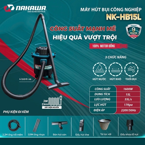 Máy hút bụi NAKAWA NK-HB15L khô ướt thổi bụi 1600W 15L