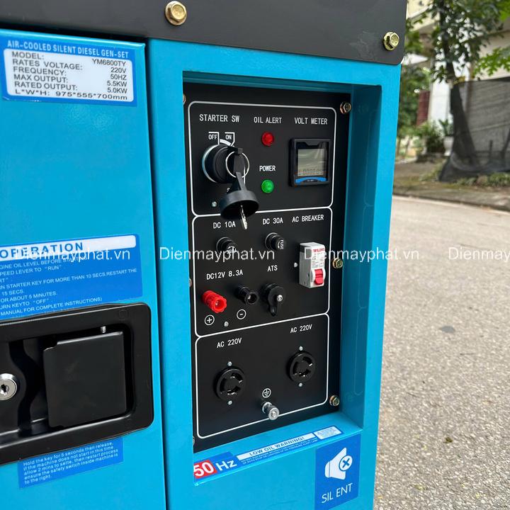 – Máy phát điện chạy dầu 5KW cách âm YAMANISAN YM6800T/Y có thể cung cấp công suất liên tục 5kw điện cho các thiết bị sử dụng trong gia đình như đèn chiếu sáng, quạt gió, nồi cơm, tivi, tủ lạnh, điều hòa.