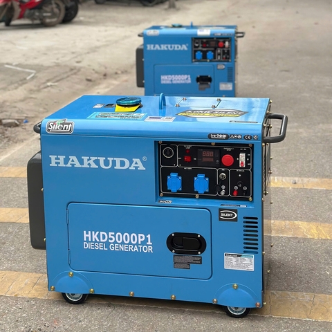 – Máy phát điện chạy dầu 5KW HAKUDA HKD5000P1 cách âm có thể cung cấp công suất liên tục 5kw điện cho các thiết bị sử dụng trong gia đình như đèn chiếu sáng, quạt gió, nồi cơm, tivi, tủ lạnh, điều hòa.
