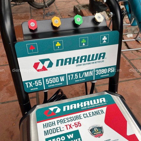 – Máy rửa xe cao áp NAKAWA 5.5KW 3000 PSI 3 pha TX-55 (piston sứ) được sản xuất trên công nghệ hiện đại của Nhật Bản, tích hợp với những tính năng ưu việt: lưu lượng lớn, áp lực cao, thân thiện với môi trường.