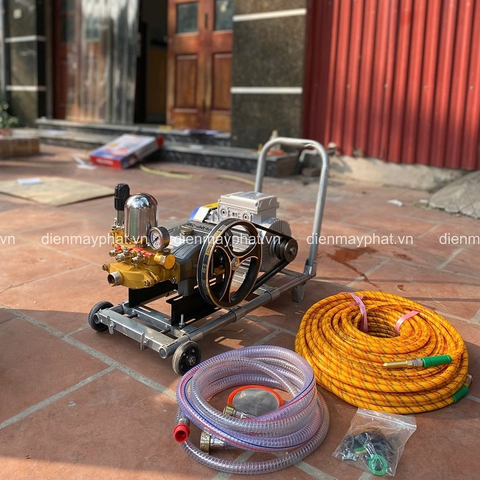 Máy rửa xe dây đai 5.5KW 3 pha: Tích hợp với những tính năng ưu việt như lưu lượng lớn, áp lực cao, thân thiện với môi trường. Máy được trang bị bệ kéo, bánh xe di chuyển cực kì dễ dàng tiện lợi. Công suất 5.5kW áp lực phun lên tới 45kgf/cm2, dễ dàng làm sạch các vết bẩn và mảng bám.