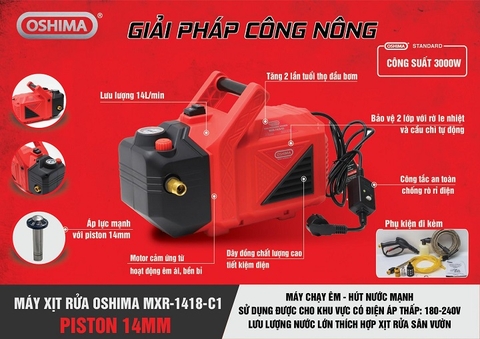 Máy rửa xe mini gia đình Oshima 3000W MXR-1418-C1 sở hữu những ưu điểm vượt trội như: