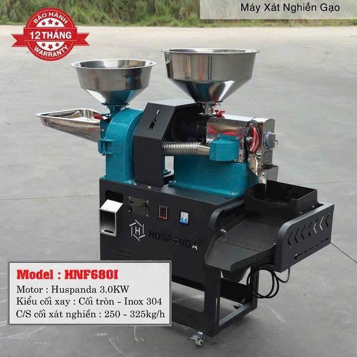 Máy xát nghiền gạo HUSPANDA 3KW HNF-680I là thiết bị xay xát hiện đại, được thiết kế phục vụ nhu cầu chế biến gạo và nghiền cám ngay tại gia đình hoặc cơ sở sản xuất nhỏ. Với công suất 3KW mạnh mẽ, máy hoạt động ổn định, giúp xay gạo nhanh, hạt gạo trắng đẹp, đồng thời nghiền cám hiệu quả, tiết kiệm thời gian và chi phí.