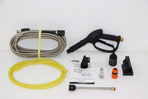 – Phụ kiện bao gồm: lọc nước, dây hút 1.5m, dây áp lực 10m, súng, bình bọt. Với bộ phụ kiện đầy đủ bạn chỉ cần lắp đặt là có thể sử dụng luôn mà không cần phải mua thêm bất kỳ bộ phận nào khác.