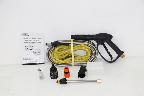 – Phụ kiện bao gồm: lọc nước, dây hút 1.5m, dây áp lực 10m, súng, bình bọt. Với bộ phụ kiện đầy đủ bạn chỉ cần lắp đặt là có thể sử dụng luôn mà không cần phải mua thêm bất kỳ bộ phận nào khác.