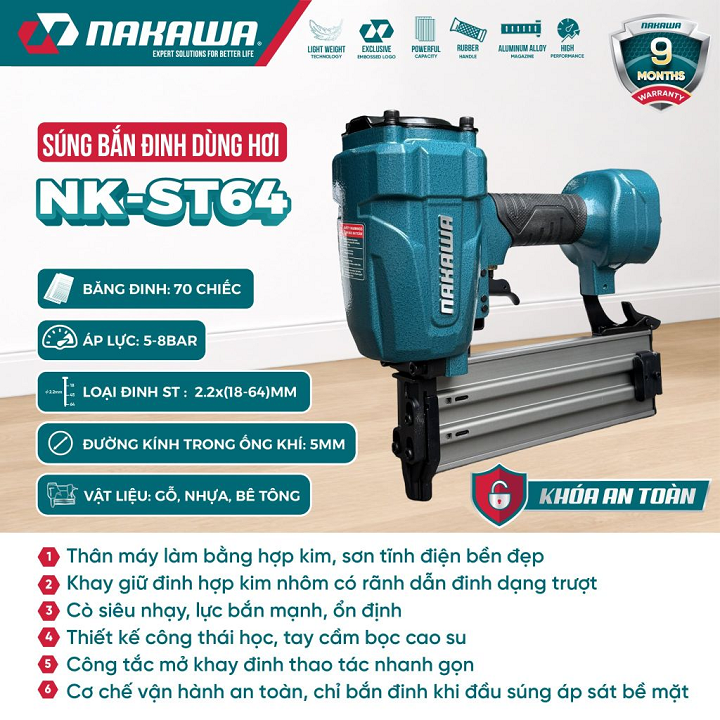 Ưu Điểm Súng bắn đinh bê tông NAKAWA NK-ST64